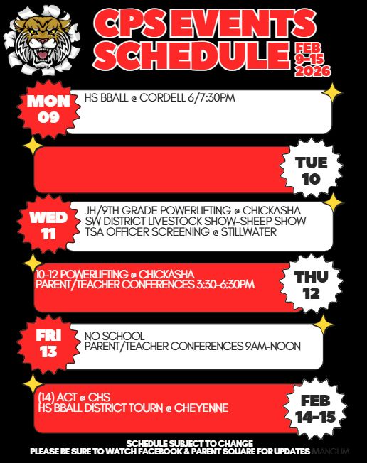 UPDATED WINTER BREAK ACTIVITY SCHEDULE: Due to a gym maintenance issue, the CHS basketball games at Geronimo scheduled for Saturday, January 3 have been postponed to January 12th and will now be pl...